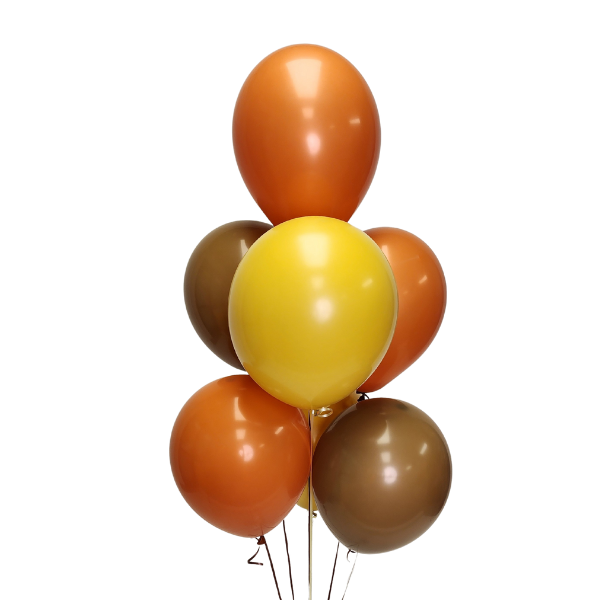 - 7 premium latex balloons (mix of nutmeg, saffron, and coffee)