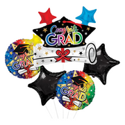 This vibrant 5-balloon bouquet is packed with color and joy, featuring a giant cap-and-diploma balloon plus a mix of star and circle foil balloons shouting “Congrats Grad!” in rainbow hues. It’s the ultimate way to say “You did it!” — perfect for parties, photos, or surprise drop-offs.