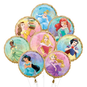 – 8 assorted round foil balloons featuring individual Disney Princesses