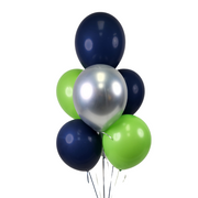 - 7 premium latex balloons (mix of midnight navy, chrome, and lime pop)
