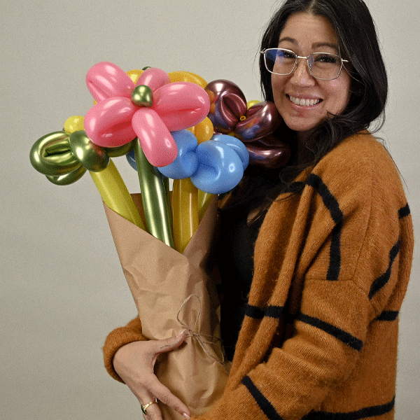 • The Look: 5-6 premium latex flower balloons expertly hand-twisted and finished with a chic signature bow.